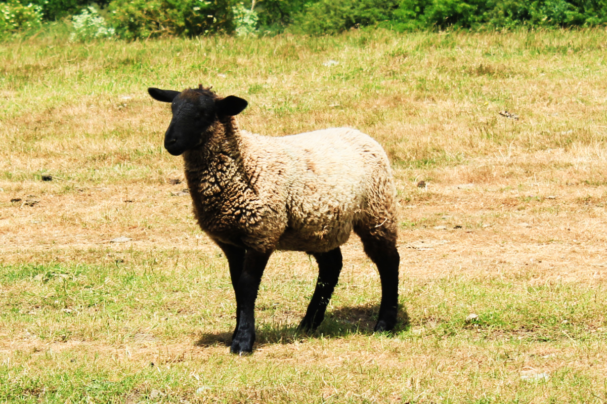 A black-faced lamb, probably not of Coke’s breeding, but rather cute grazing at Venta Icenorum (Roman town at Caister St Edmunds): Photo 21t June 2018