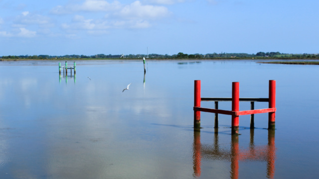 In bygone days, windmills were used for pumping water drained from the marshes into the estuary. These days we have this. It’s a bit of a landmark with no other buildings for miles around. It’s also where we’re going to leave Breydon to cut across those marshes.