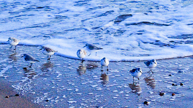 But we walk the surf-line… and see these scurrying sanderlings. There must be at least 50 of them spread out along the shore