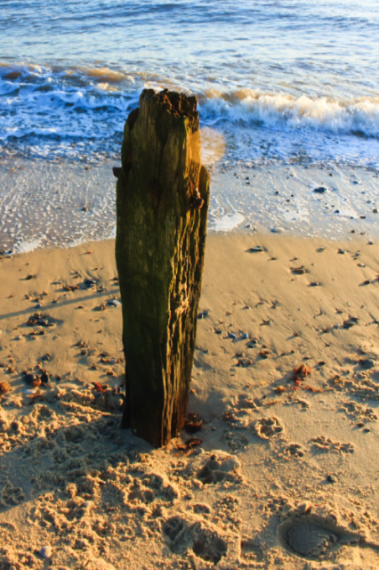 A random post? No, the remains of a groyne