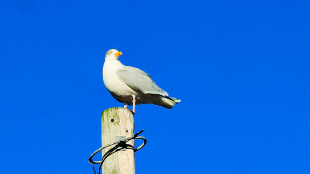 And as we trail past the holiday camps at Hemsby, I’m delighted to see a gull keeping a look-out