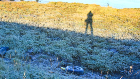 It’s late before I set out but the overnight frost remains thick on the ground
