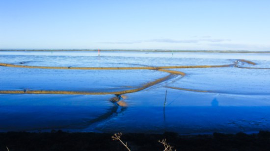 The mudflats change according to the light; it’s now afternoon and the tide is flowing