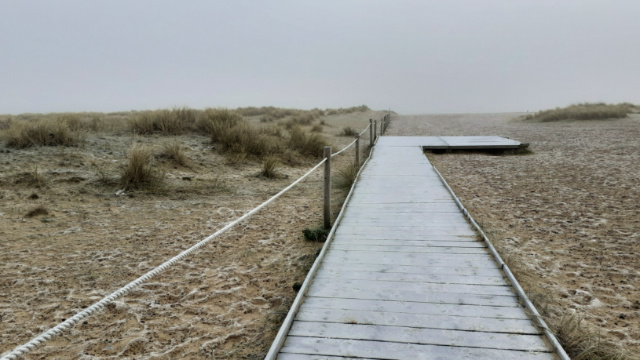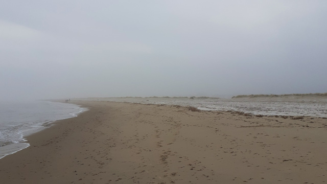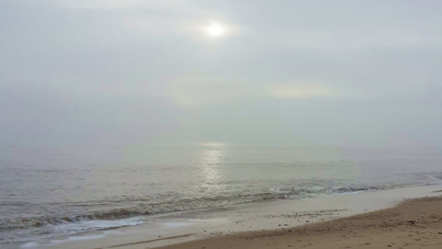 Not much to see… fog, frost, no birds, the sea a gentle sigh… waiting for the sun to winkle through