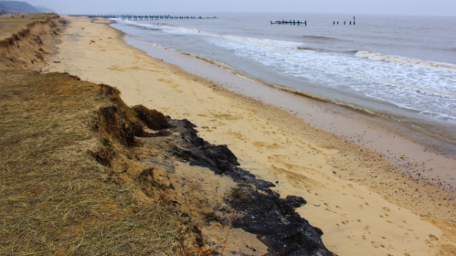 As at Gorleston just north of here, the sea has carved channels and mini cliffs into the beach over recent months