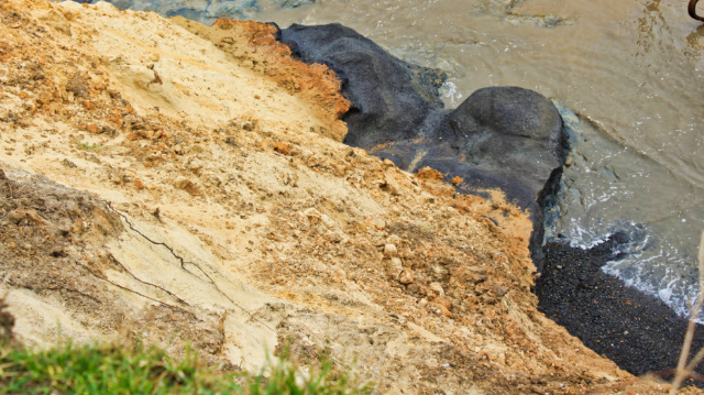 The tides have exposed hard black oil, remains of an oil-tanker disaster in the English Channel in 1978