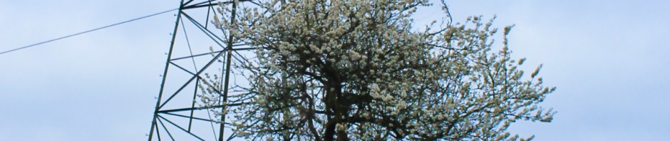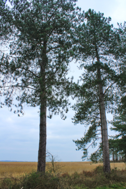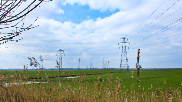 Skirting the grazing marsh, the path clings close to the woods, and is muddy. And look here, the field sprouts pylons as if they’re a crop!