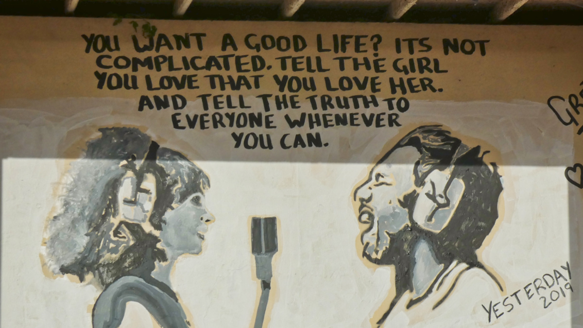 On Gorleston seafront, street art commemorates the making of the movie Yesterday in 2019…