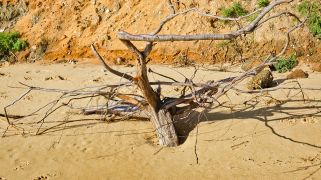 No, it’s not a miniature version of Sea Henge. It’s a bush that before the winter storms grew atop the cliff