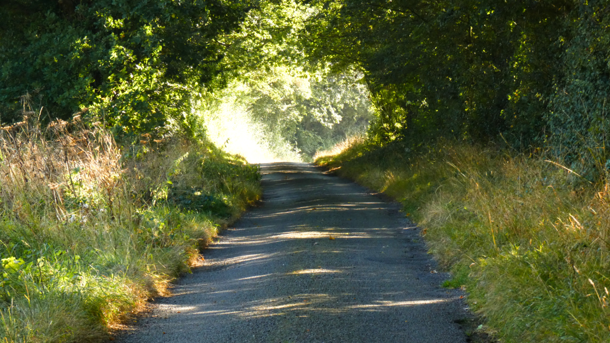 Love country lanes. Trees, sunlight and no traffic
