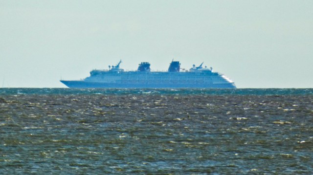 On the distant horizon a cruise ship heads to the Norwegian fjords: 23 Sept 2021