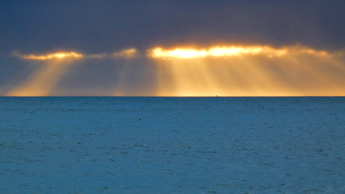 Looking shoreward (to the west, away from the hidden sunrise)