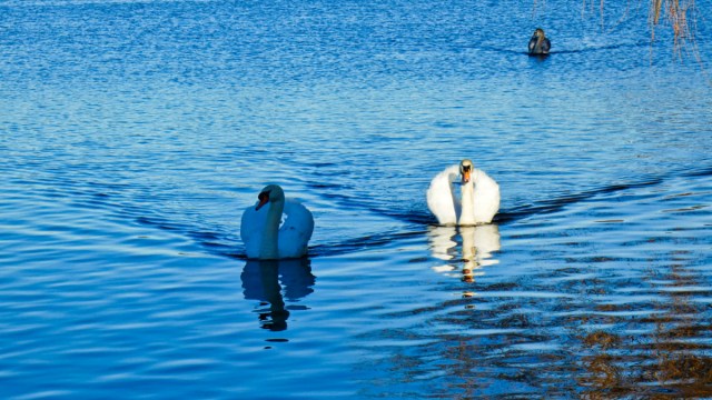 How deep blue the water is! Great shots and the swans are so majestic. Thanks for sharing