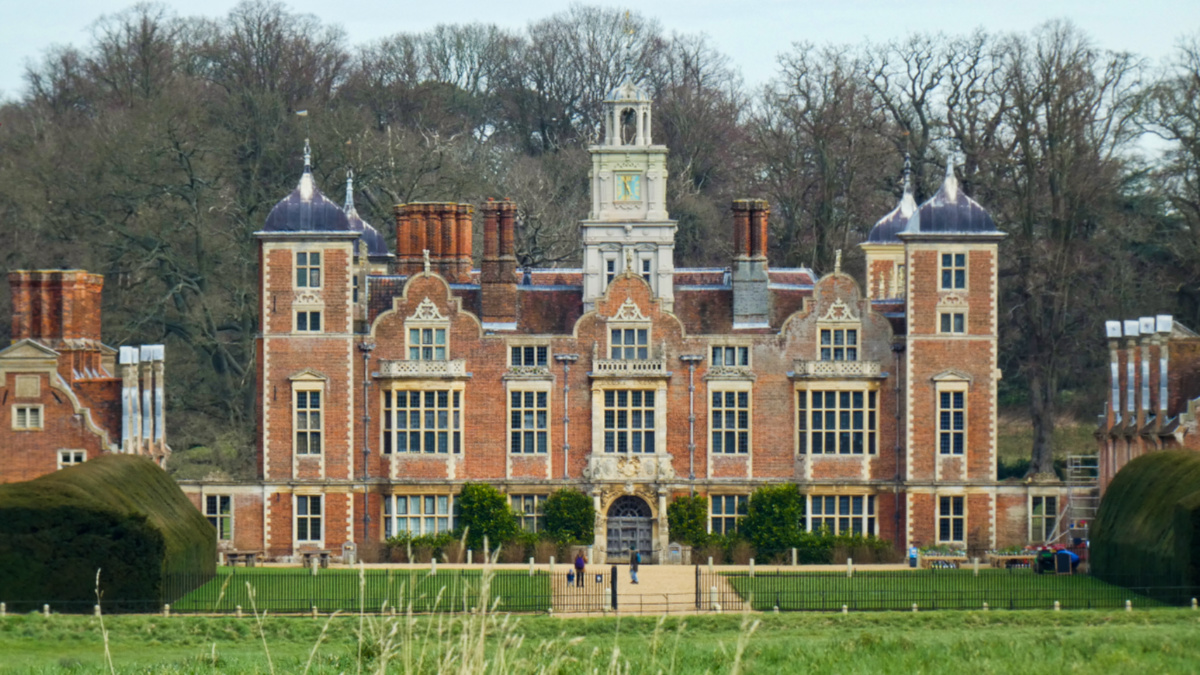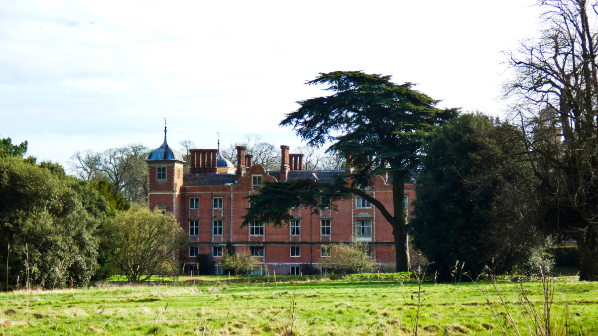 First sighting of Blickling Hall, seen from a distance, on zoom…