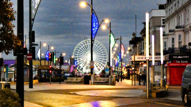 One is taken with the dunes as foreground, the other with the promenade, heavy with touristy lights