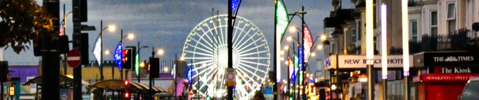 One is taken with the dunes as foreground, the other with the promenade, heavy with touristy lights