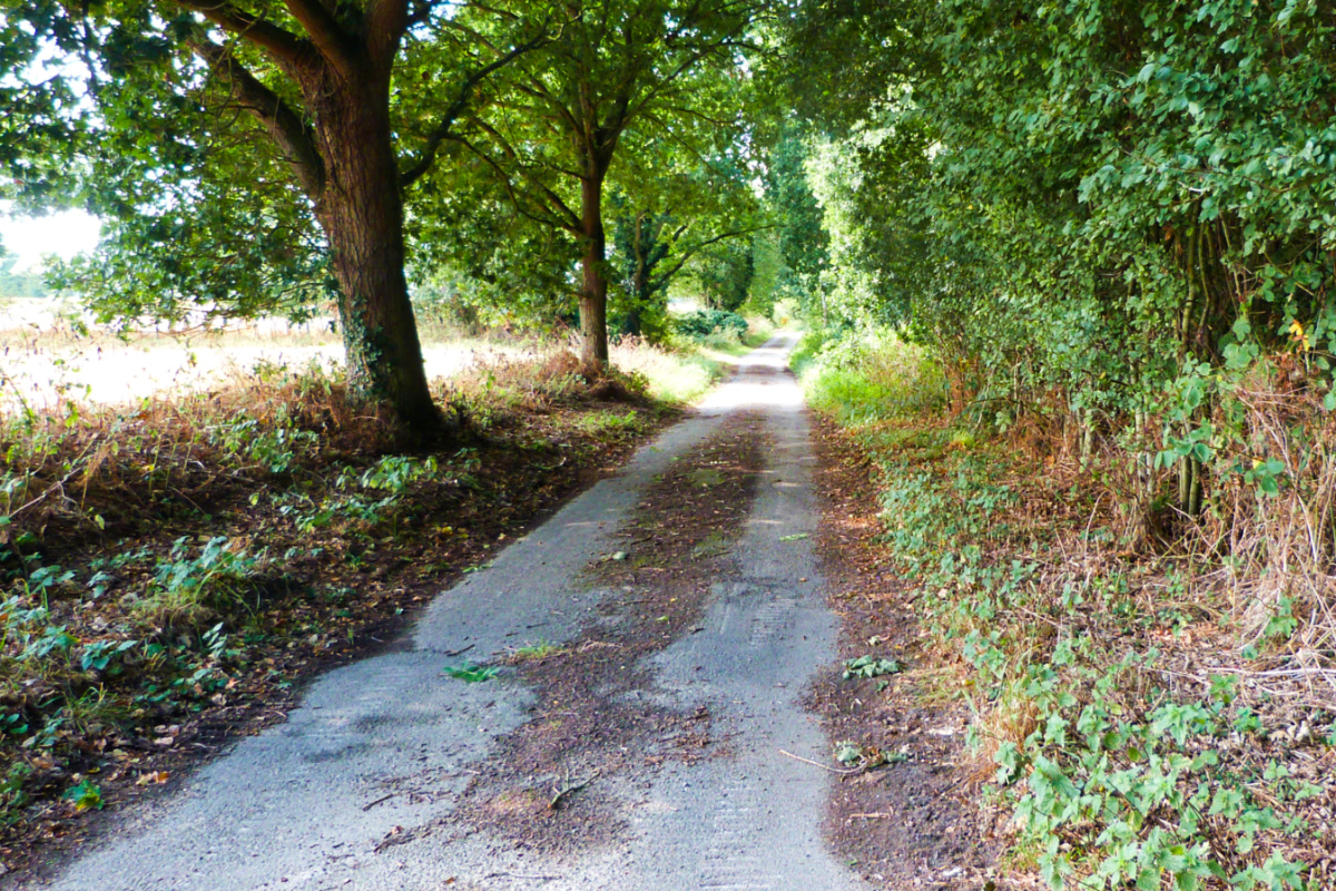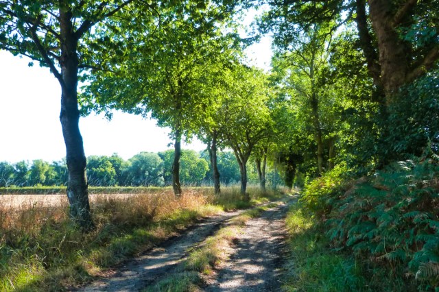 And over a stile and onto a track. By now that shade is most welcome…