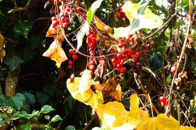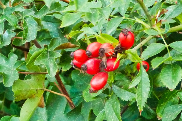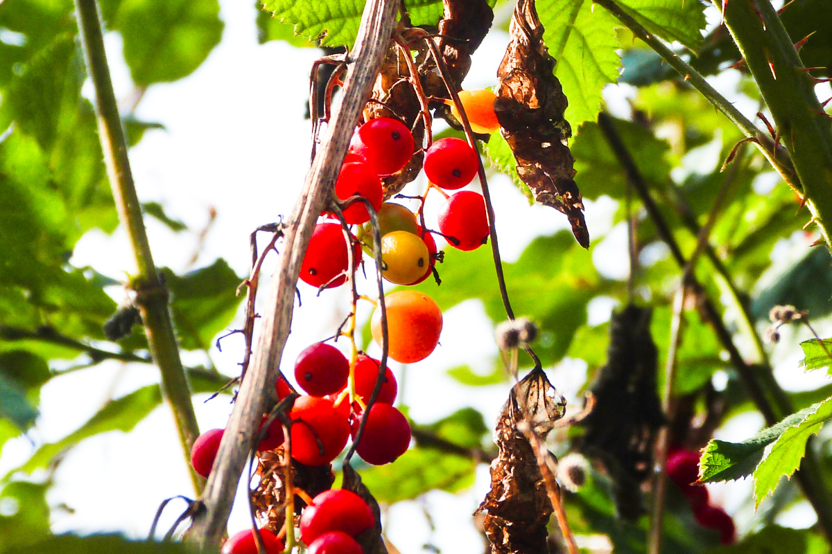 We’re at that time of year when flowers are few (and those mostly yellow), and fungi have yet to appear in abundance, but berries are everywhere