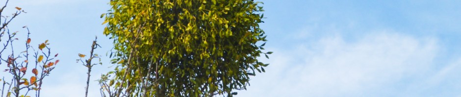 I know a hedgerow where mistletoe grows on every tree no matter the species: hawthorn, lime…and as here, apple. Mistletoe on apple and oak were the druid’s delight (though I’ve never seen it growing on oak!)