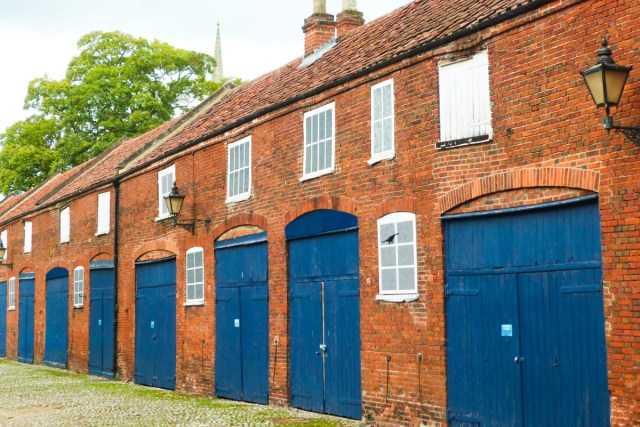 A scene in The Close, Norwich Cathedral, where residents in former days were able to stable their horses, the grooms probably sleeping above, in the hayloft