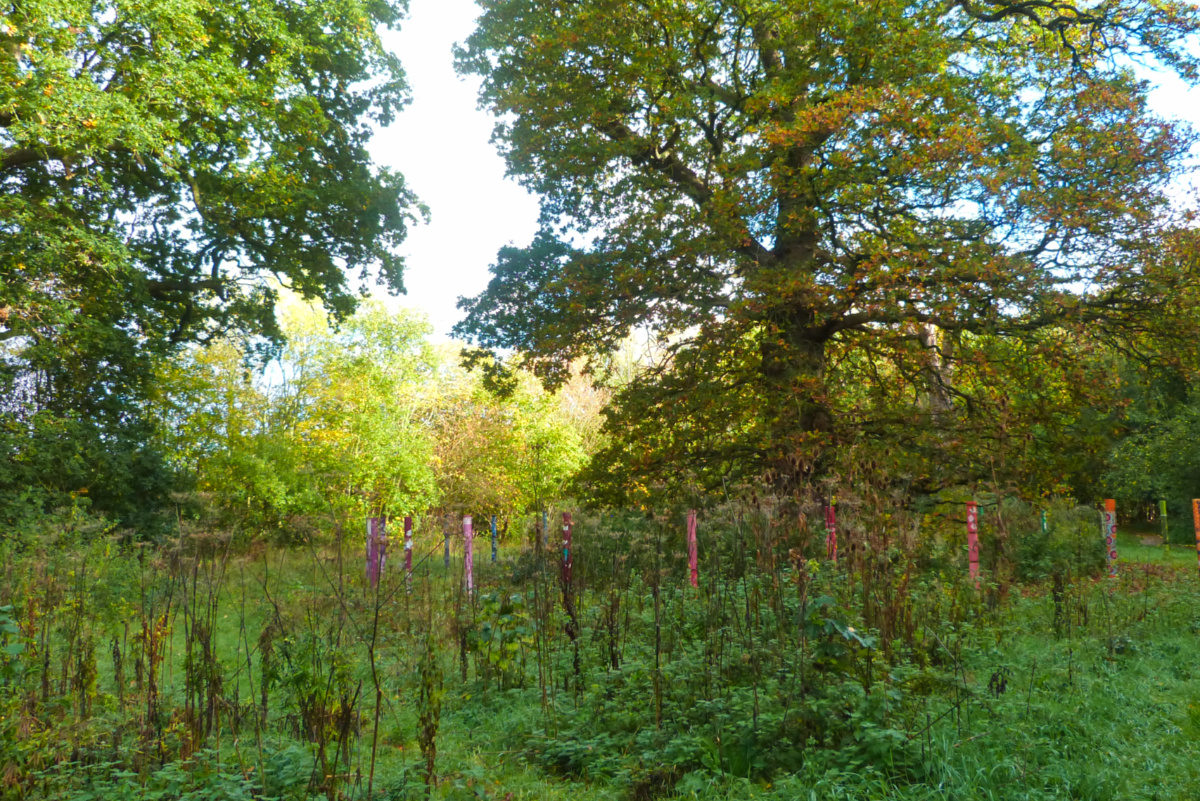 The painted posts are what remains of a pre-Covid project by the local schools and various youth groups to make the “Burlingham Henge”! They ring around that mighty oak. A shame the sun isn’t reaching here.