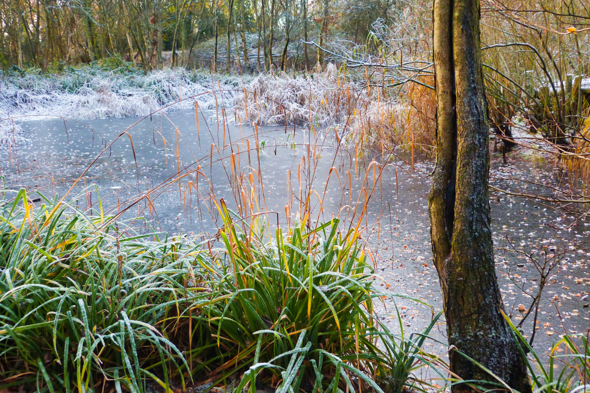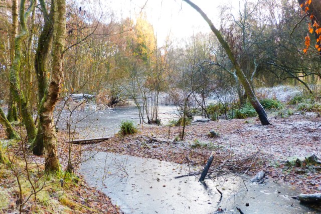 We continue our frosty walk on 14th December. We began at Thorpe Marriot with a woodland and a frozen pond, and we walked along Marriott’s Way, beside the River Wensum, to Costessey…where there’s more woodland and more frozen ponds. Enjoy