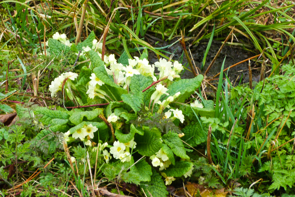 These growing just beyond a garden fence are probably cultivated primroses. But the next two photos are 100% the genuine wild McCoy