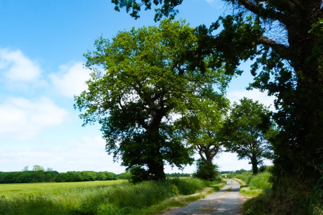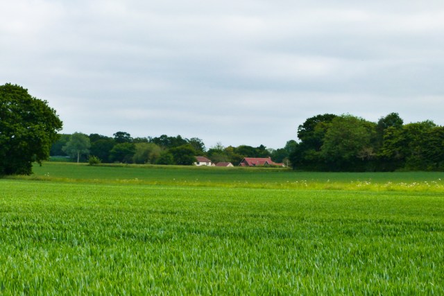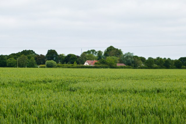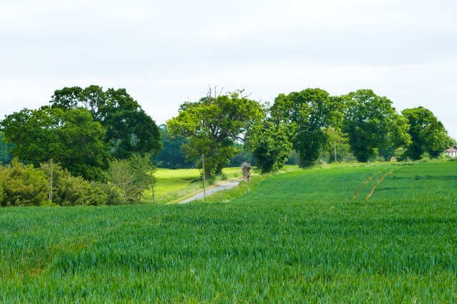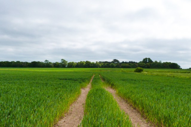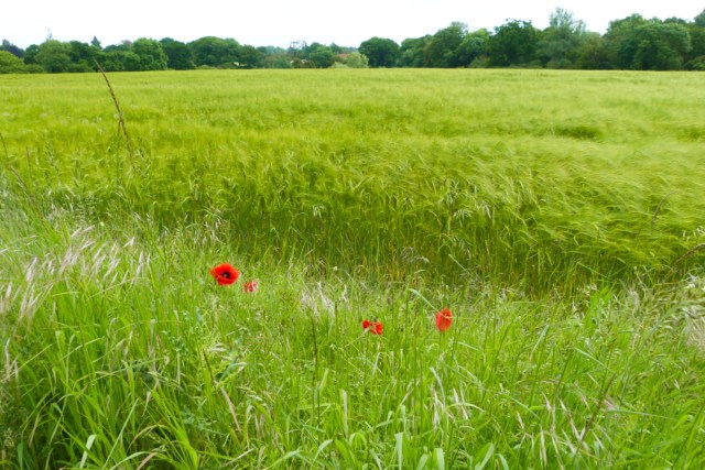 The path leads us across arable fields, the crops beautiful in their shades of green