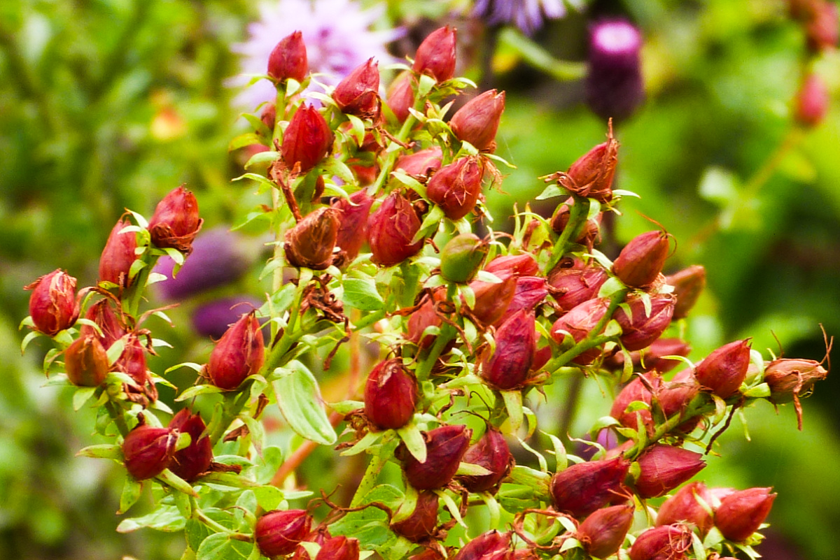St John’s Wort after flowering. Not sure which species. I have this in my garden and I’m most upset because mine haven’t turned this wonderful crimson-red!