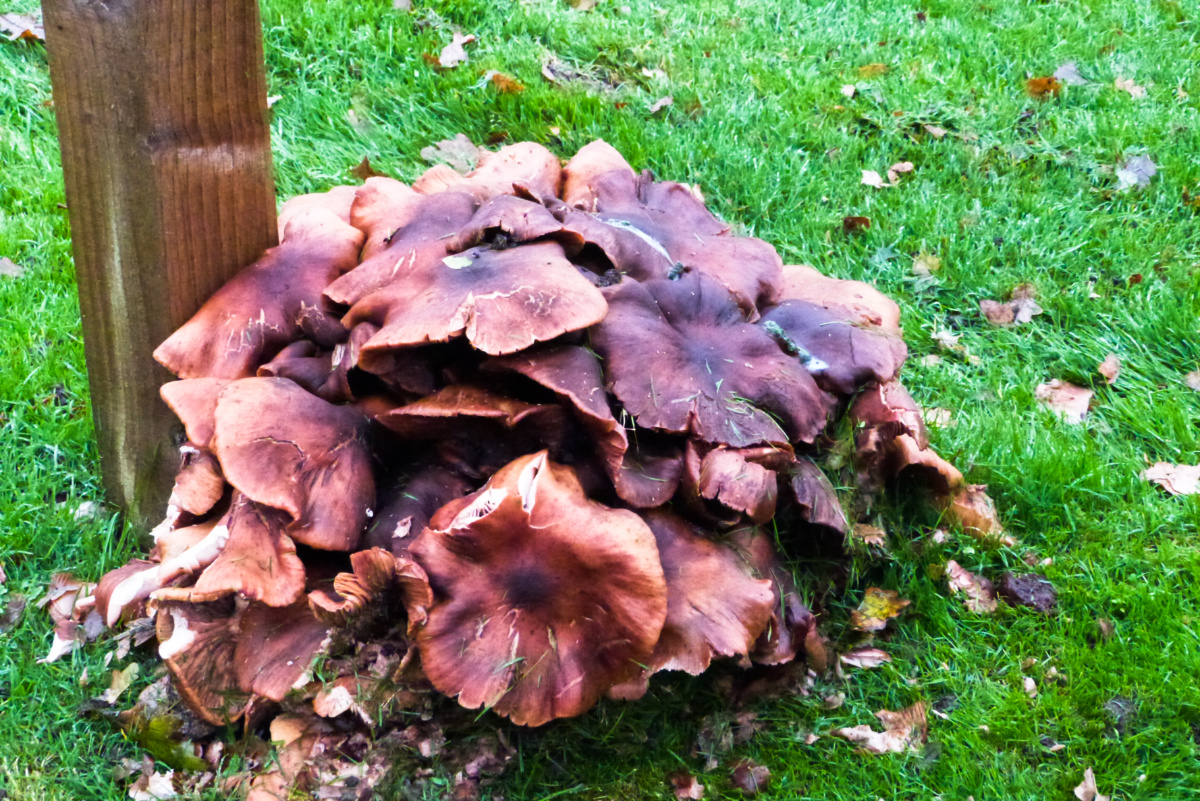 Nothing like a few fungi to brighten a day. Love the cluster at the base of the post. Have a good weekend.