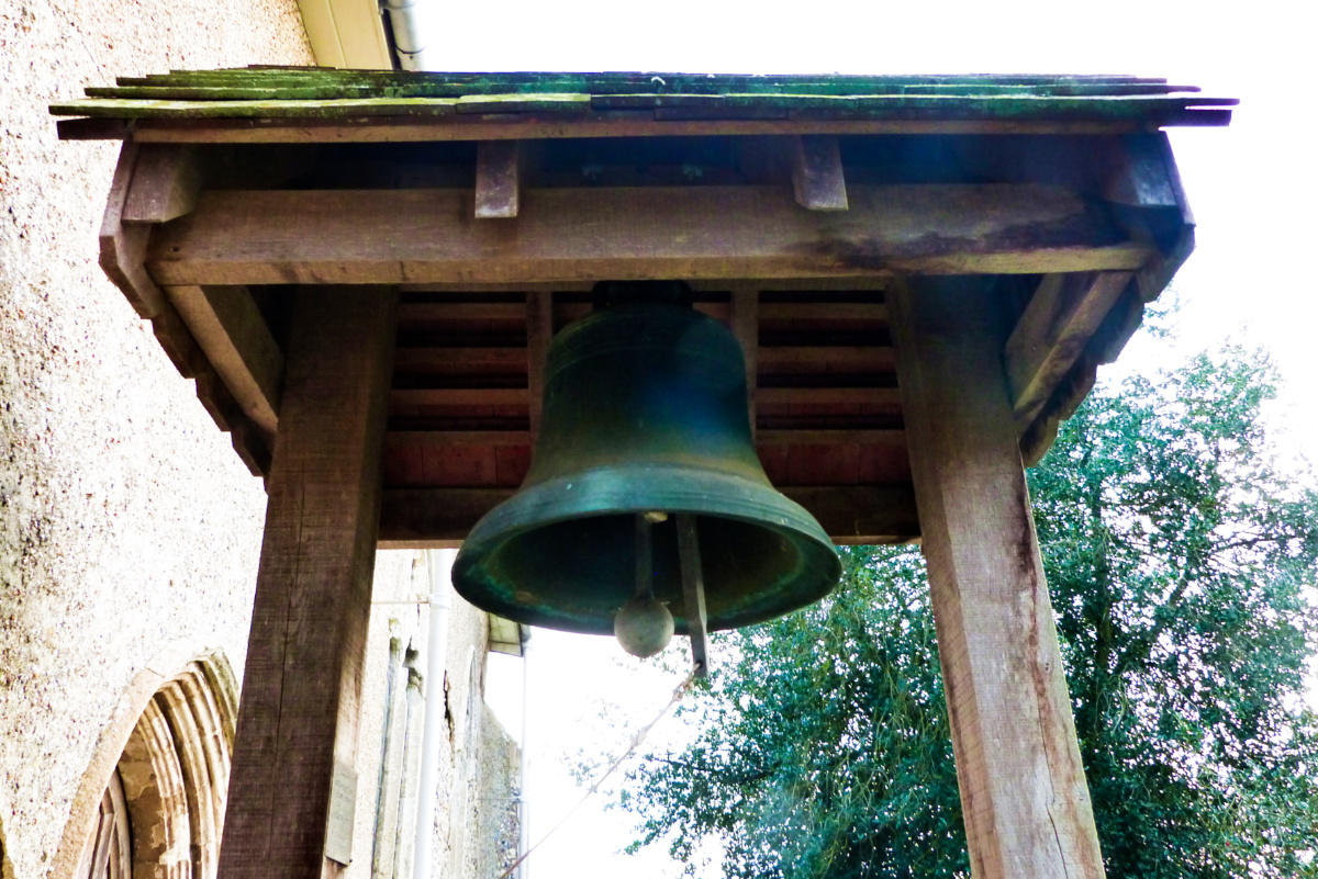 Unusual for a Norfolk church, it hasn’t a tower. Its single bell sits outside the door.