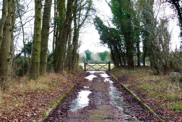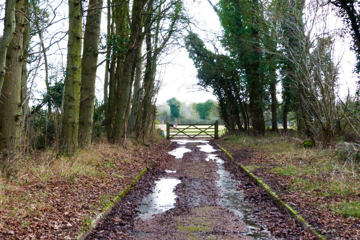 Solid puddles! The gate gives way to another path which takes us through a second woodland.