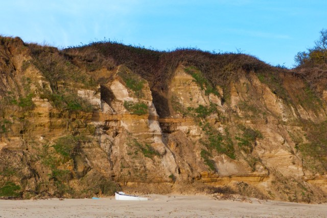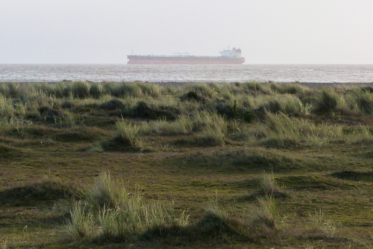 Kessingland cliffs are faced by extensive dunes, but sea mist always makes the ships seem closer…