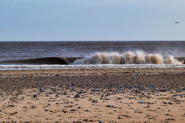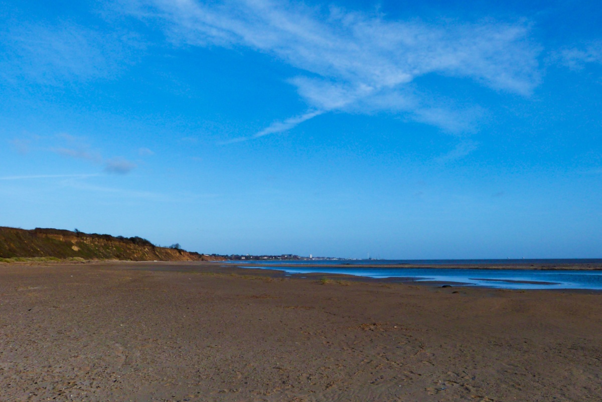 But wait, it’s supposed to be low tide yet the winds are holding the tide high and there’s no way we’re going to make it to Pakefield. We’ll have to turn back, take one of the exits from the beach, and catch a bus. Drats!