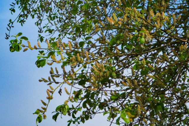 Willows hang out their catkins to greet us, and the sun is obliging. But our route takes us across the interfluve between rivers Bure and Yare, and the soil here is claggy so we’re not surprised when we see misty horizons