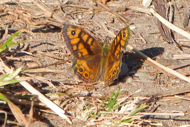 Male wall butterfly (above) and female wall butterfly (below); they kept us company for much of the walk, busy with their courtship