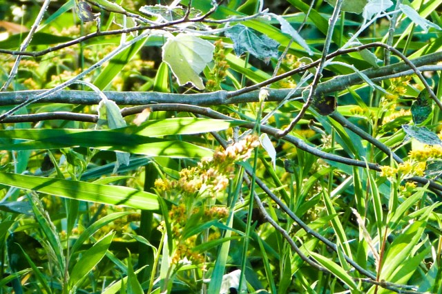 Bindweed in a bind with a hybrid mint while garden escapee golden rod provides the gold to the silver of a grey poplar
