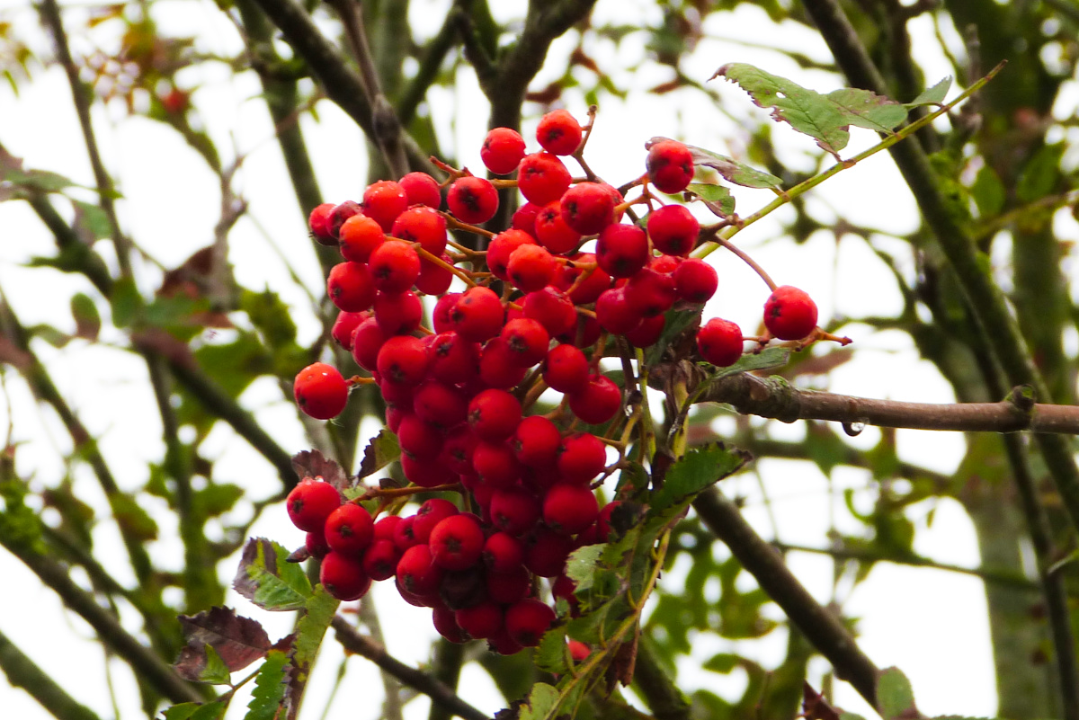 Rowan/Mountain Ash brightens our hedgerows, as does the elder now in berry