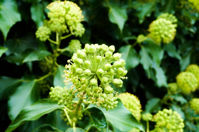 Ivy, the great attractor of bees, though not when it’s wet. And field scabious (with bee)