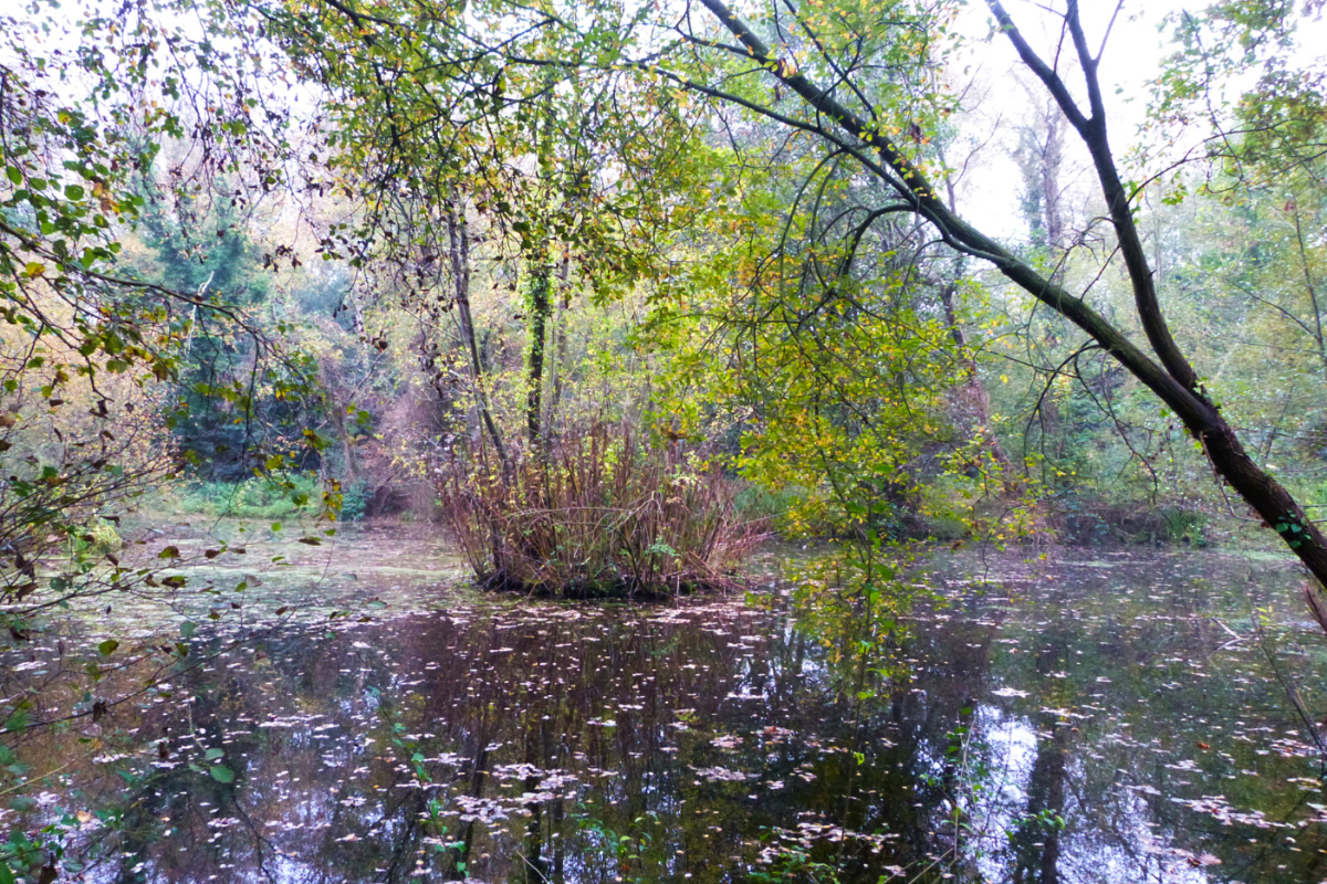 There are several ponds, former gravel-diggings. This is one of the smaller ones, inaccessible last year due to extensive flooding of the area