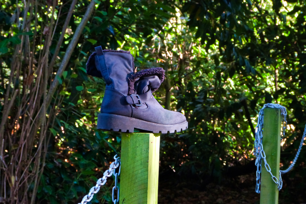 When out on our walks it’s nothing unusual to find a lost glove, hat, or a scarf. But a boot? True, it was near a car park which might explain it.