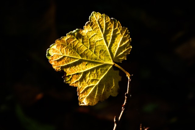 And the last pic of the day, a wild red-currant leaf turned gold. Perfect