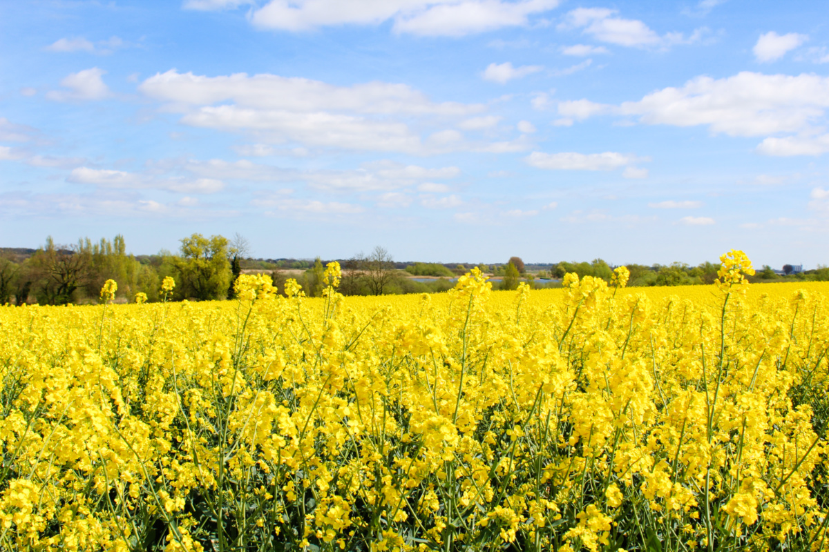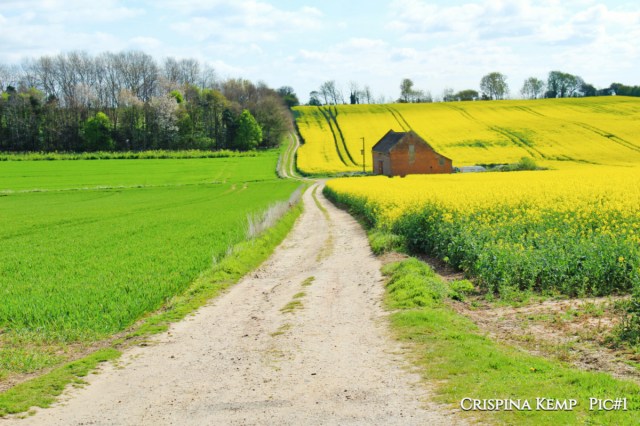 All along the lanes from where we’ve hopped off the bus, and into the riverside village of Surlingham, the fields are yellow with canola. That red brick barn stands out in contrast.