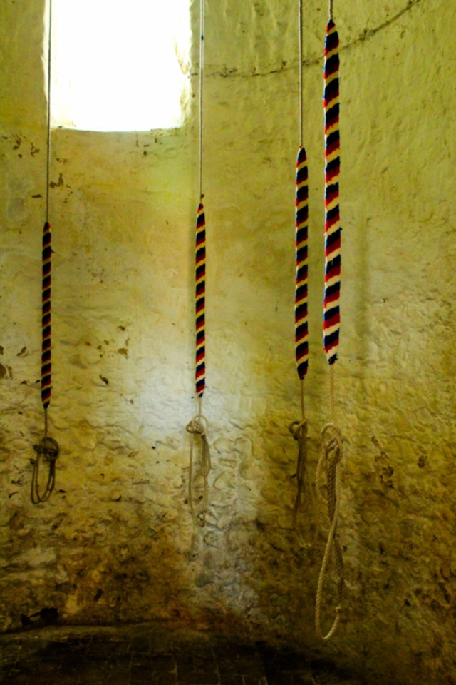 If a village church is open, I always look in. Here I found the bell-ringers ropes
