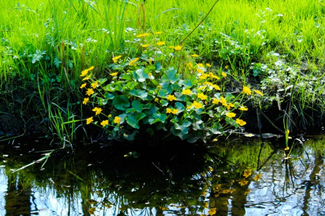 I knew these marsh marigolds as kingcups when I was a child. I love to see them, as here, reflected in the water