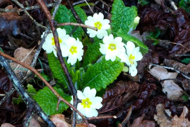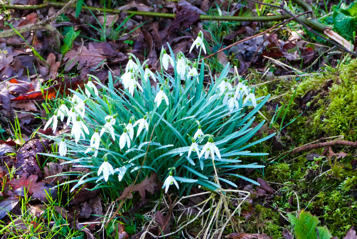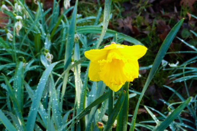 Snowdrops and daffodils, all a bit bedewed with last night’s rain