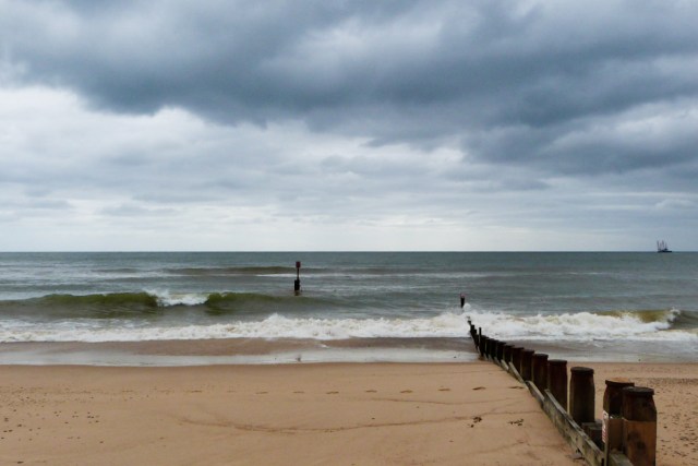 Two different views. Eight miles (as the seagull flies) to south is Sizewell B power station πΌπ½ to the north, the promenade as reflected in a distorting mirror