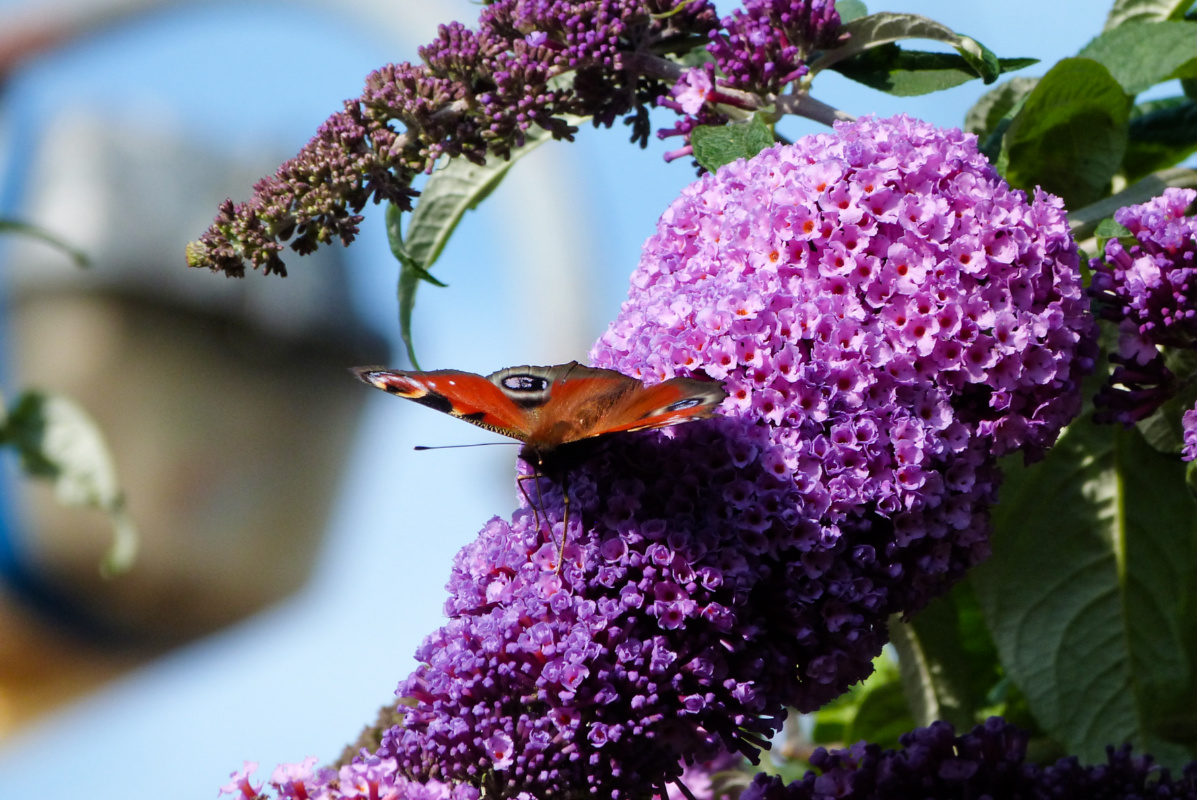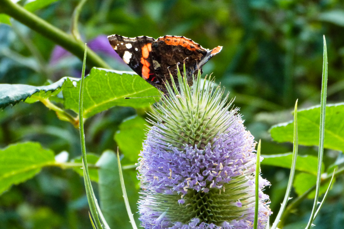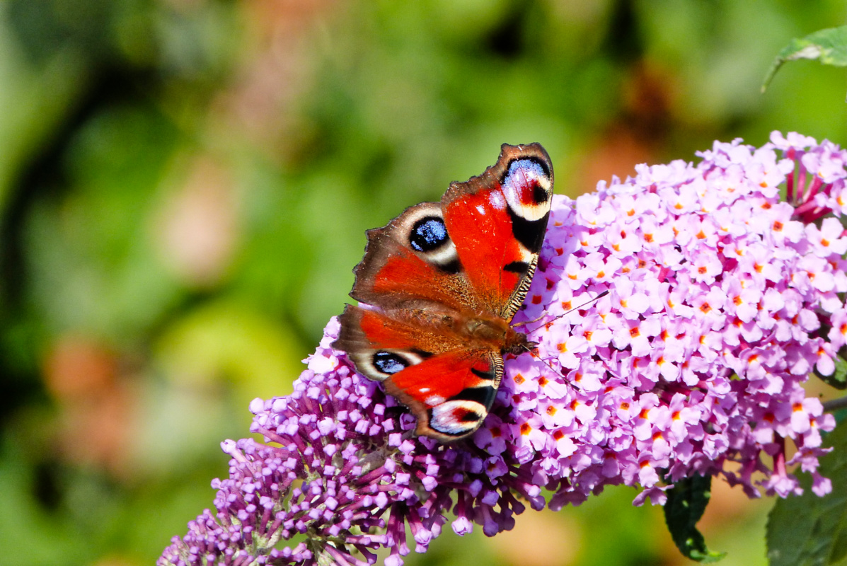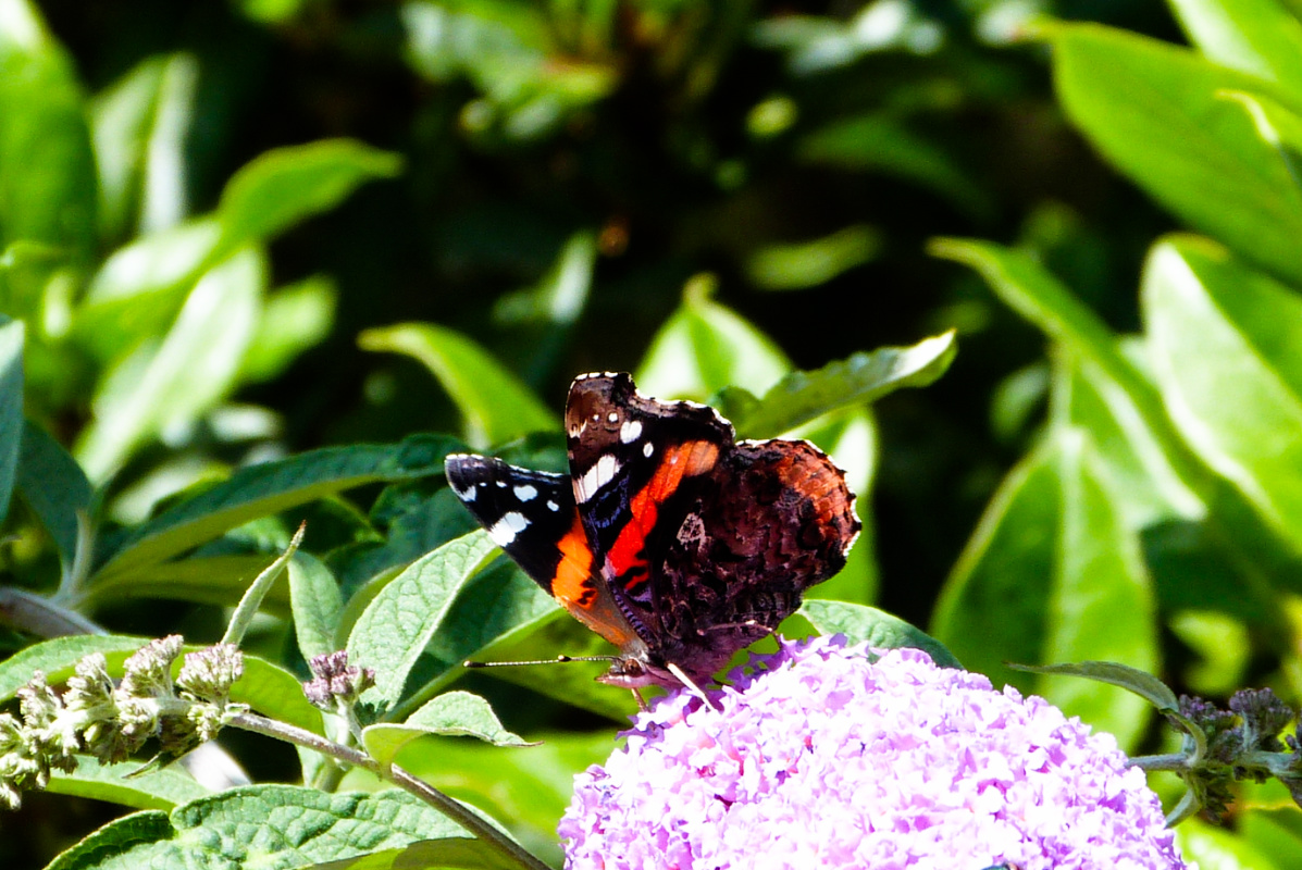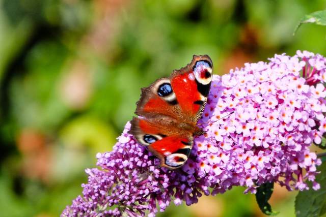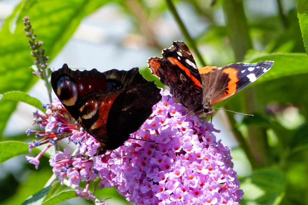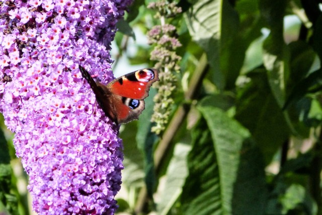 Peacock and Red Admiral sharing a meal πŸ”Ό