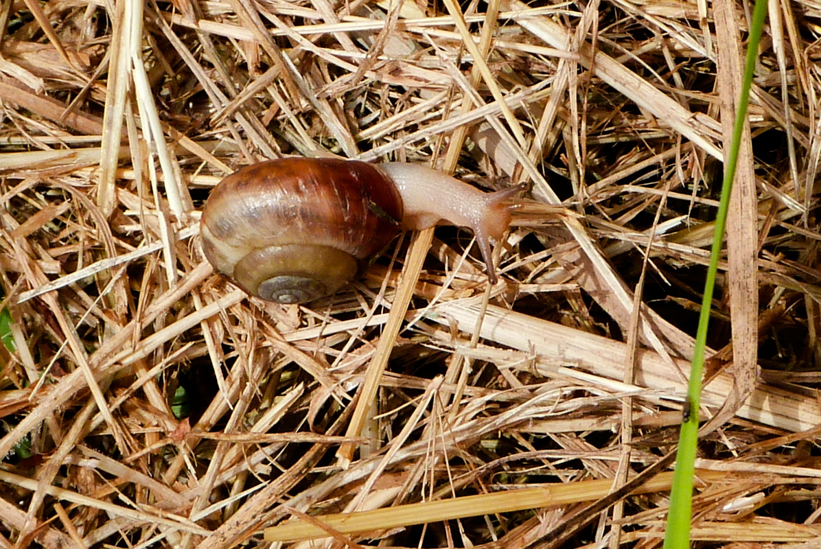 And finally 🔽 a native snail, slowly crossing the dry trampled grasses