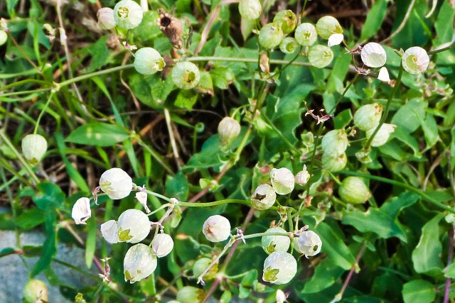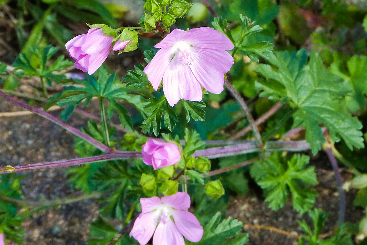 Musk mallow ๐ผand ๐ฝ the remains of the bladder campion’s flowers, both enjoying the sun that hits the crest of the flyover